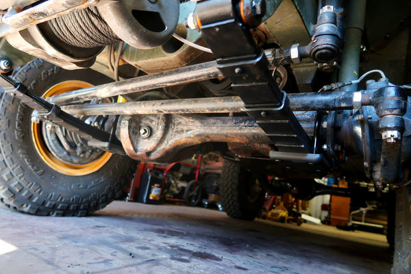 The Timmco high-clearance spring plate kit eliminates the U-bolts that traditionally attach your vehicle's axles to its suspension’s leafsprings. The kit employs breech clamps that encircle the axle housing, along with cap screws or bolts that secure directly into the threaded plates. This design eliminates exposed U-bolt threads and nuts that typically protrude from under the axle, providing clearance benefits and enhancing the vehicle’s ability to slide smoothly over obstacles. The Timmco design also addresses issues observed in other high-clearance U-bolt style spring plates made by other manufacturers, which are prone to bending inward and compressing the leaf spring. Moreover, the spring plates are crafted from a single piece of billet steel, shaped in a shadow-style that contours underneath and around the sides of the spring. This design allows for slight rotational movement of the spring on the plate, necessary when the axle articulates, thereby maintaining optimal functionality and clearance.